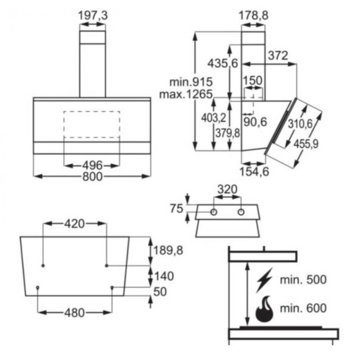 hotte décorative inclinée 80cm 700m3/h noir – dvb5860b – Hotte décorative inclinée Aeg DVB5860B. – Type de produit : Hotte décorative.