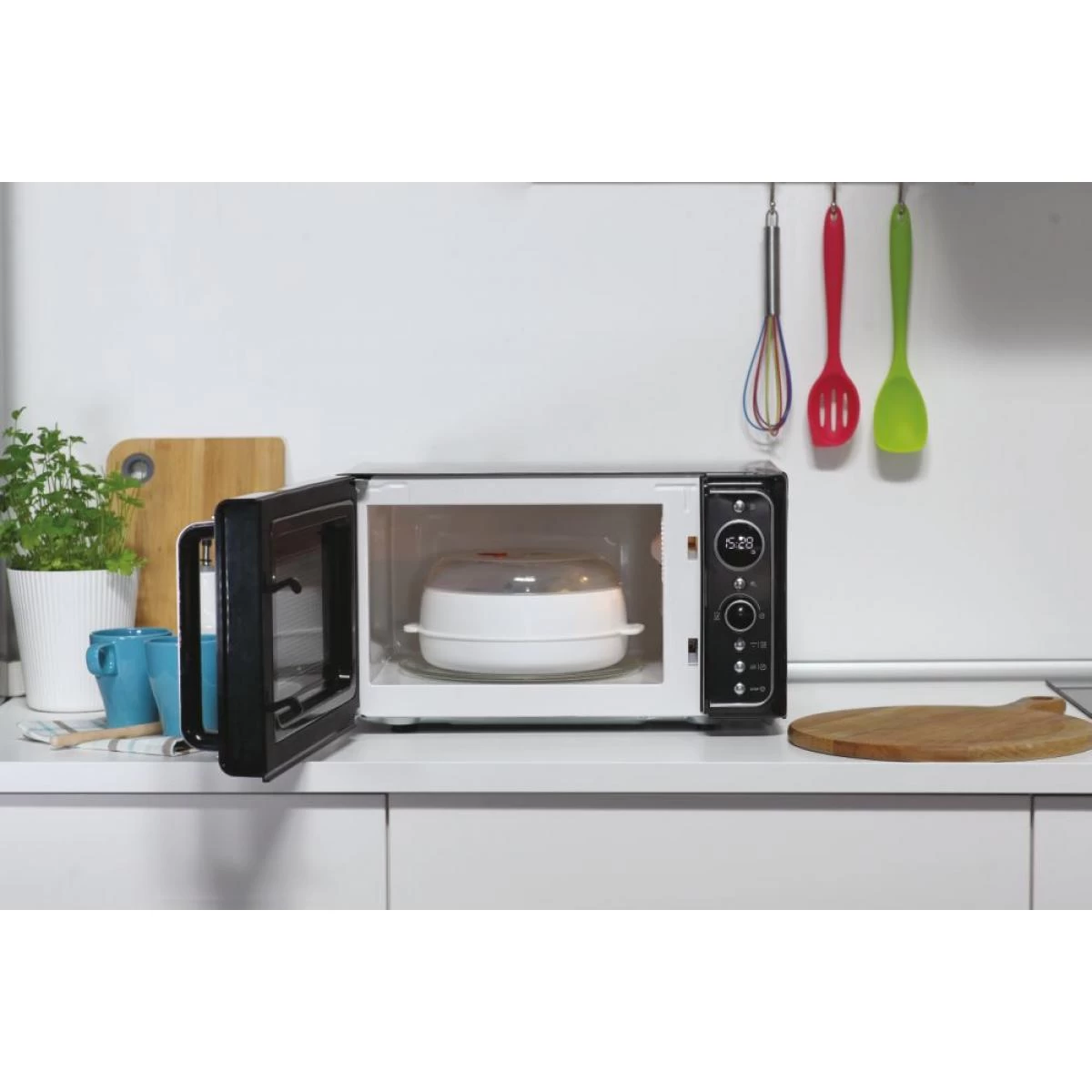 Candy Divo G20CMB. Placement de l’appareil: Comptoir, Type de produit: Micro-ondes grill, Capacité intérieure: 20 L. Charge connectée: 700 W, Tension d’entrée AC: 230 V, Fréquence d’entrée AC: 50 Hz. Largeur: 452 mm, Profondeur: 335 mm, Hauteur: 262 mm