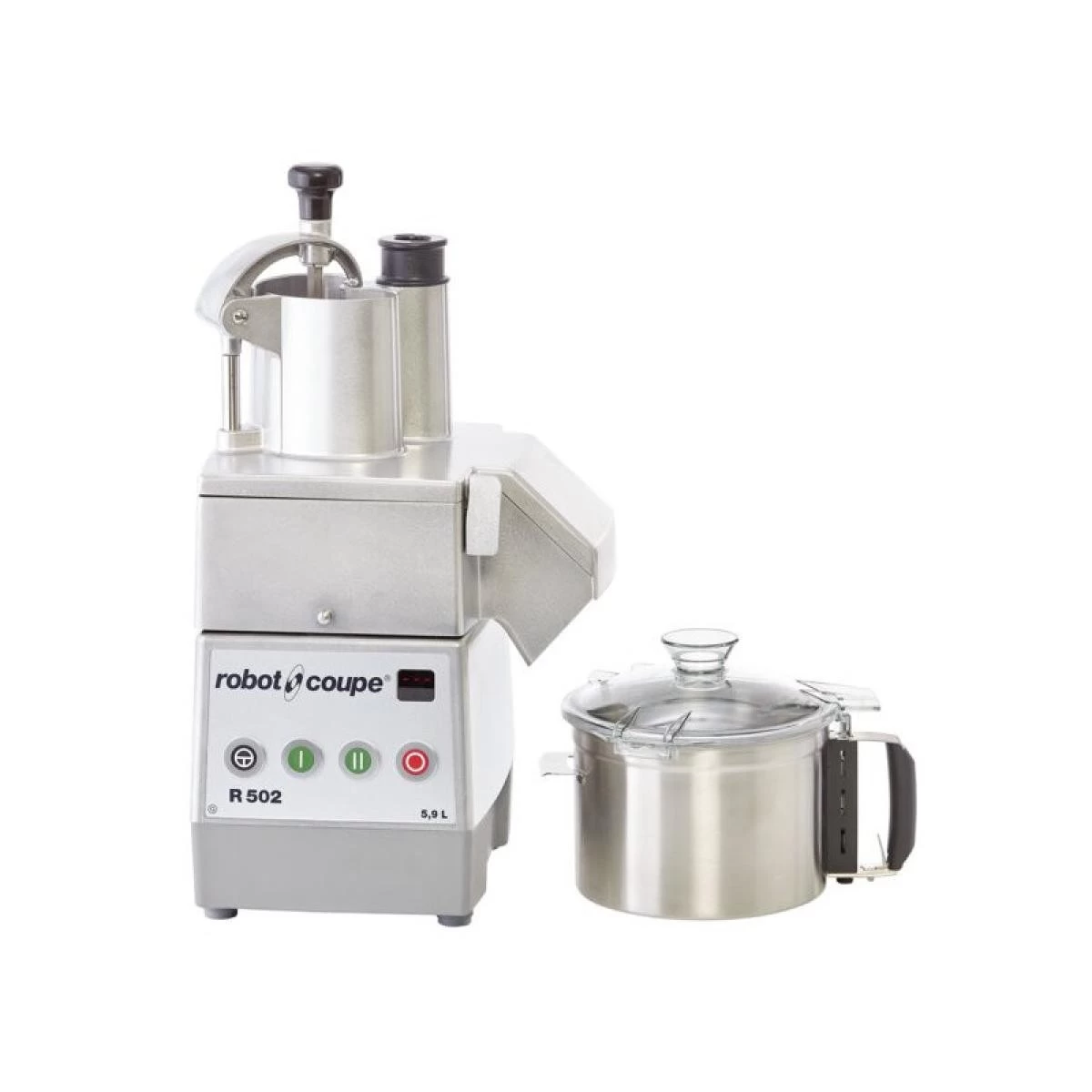 Découvrez notre univers Robot Coupe avec nos combinés cutter et nos Coupe-Légumes R 502. | Découvrez nos combinés cutter et Coupe-Légumes R 502 Cuve d’une grande capacité : Cuve en inox de 5,9 L grande capacité : gagner du temps en augmentant la quantité travaillée.Poignée Soft Touch conçue pour plus de confort et une bonne préhension.Bras racleur : Bras pour racler sans difficultés le couvercle et les bords de la cuve sans s’arrêter pour corner.Minuterie : Minuterie avec fonction compte à rebours et chronomètre pour une répétition facile des recettes et un grand confort de travail. Débit : Une grande goulotte (surface de 139 cm²) pour la coupe de légumes volumineux tels que le chou et le céleri. Possibilité de traiter en une opération jusqu’à 10 tomates.Possibilité de coupes de précision grâce à la goulotte cylindrique : Ø 58 mm légumes longs ou fragiles (ex : courgette, concombre, champignons).Des coupes exclusives : Poussoir Exactitube (Ø 39 mm): couper les fruit