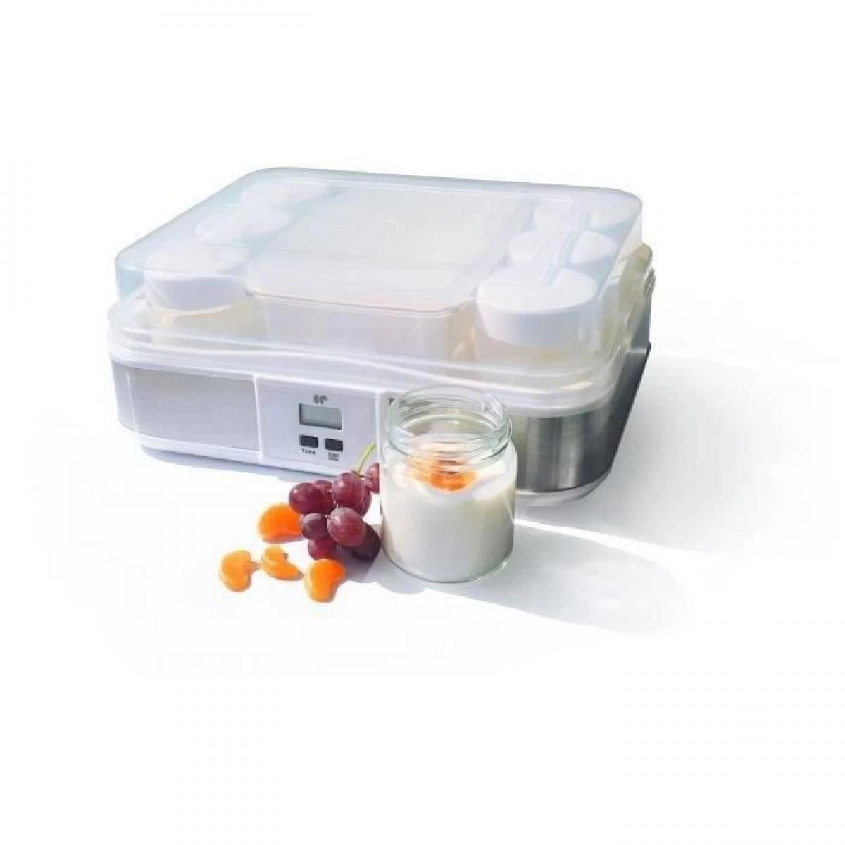 230 V – 50 Hz – 21,5 W – 12 bocaux en verre, chacun de 0,21 L – 1 bac de 1.2 L a fromage blanc en plastique Triton – Préparez du délicieux yaourt fait maison, plus frais et nutritif – Minuterie numérique, écran LCD