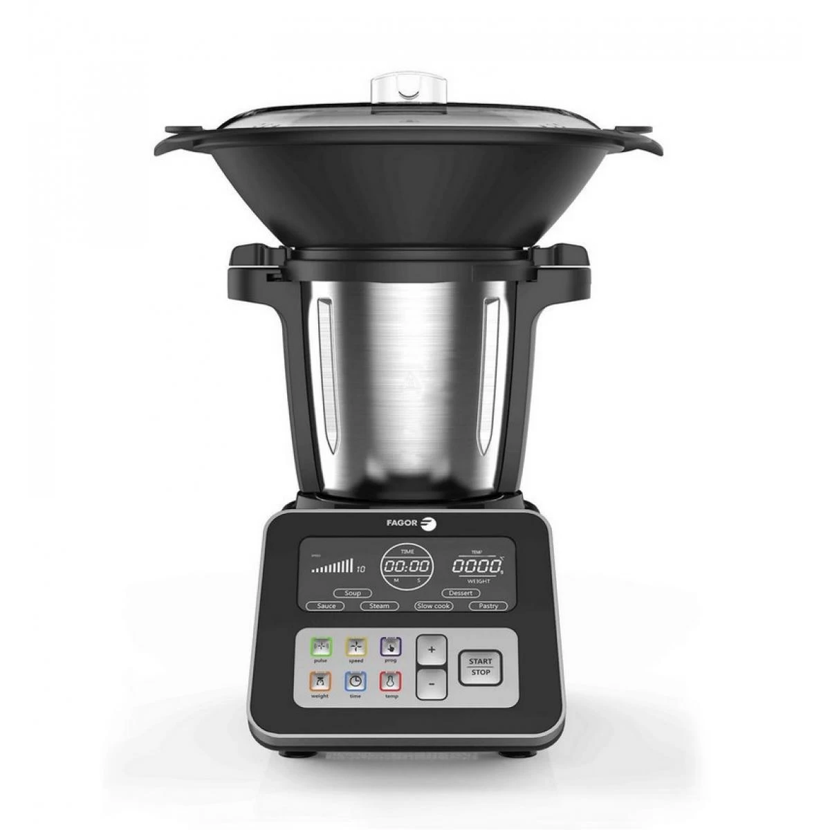 FAGOR Robot cuiseur 1500W – Bol en acier inoxydable 3,5 L – Balance intégrée – Ecran LCD – Nombreux programmes pré-enregistrés – 12 vitesses + pulse – Température 20-120° – Vitesse 4500T/MN – Plateau vapeur et accessoires – Recettes téléchargeables