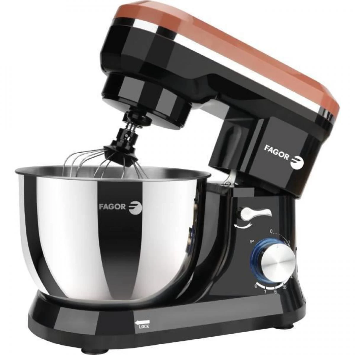 Points forts Fagor FAGOR FG164 Robot Pâtissier – 1000W – 5L – Petrin, Batteur, Fouet – 7 vitesses – Noir/Bronze