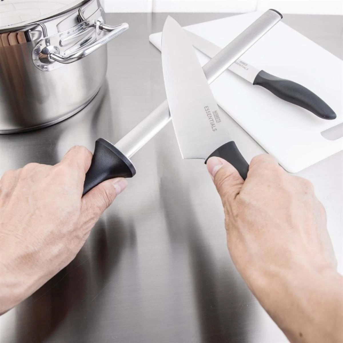 Fusil diamanté professionnel | Quelques coups suffisent à produire la lame parfaite. La surface microcrystalline donne des résultats sans comparaison avec ceux des fusils traditionnels. Dimensions: 25,5cmMatériel: Acier au diamantEchelle de dureté Rockwell: 99°Poids: 170 g