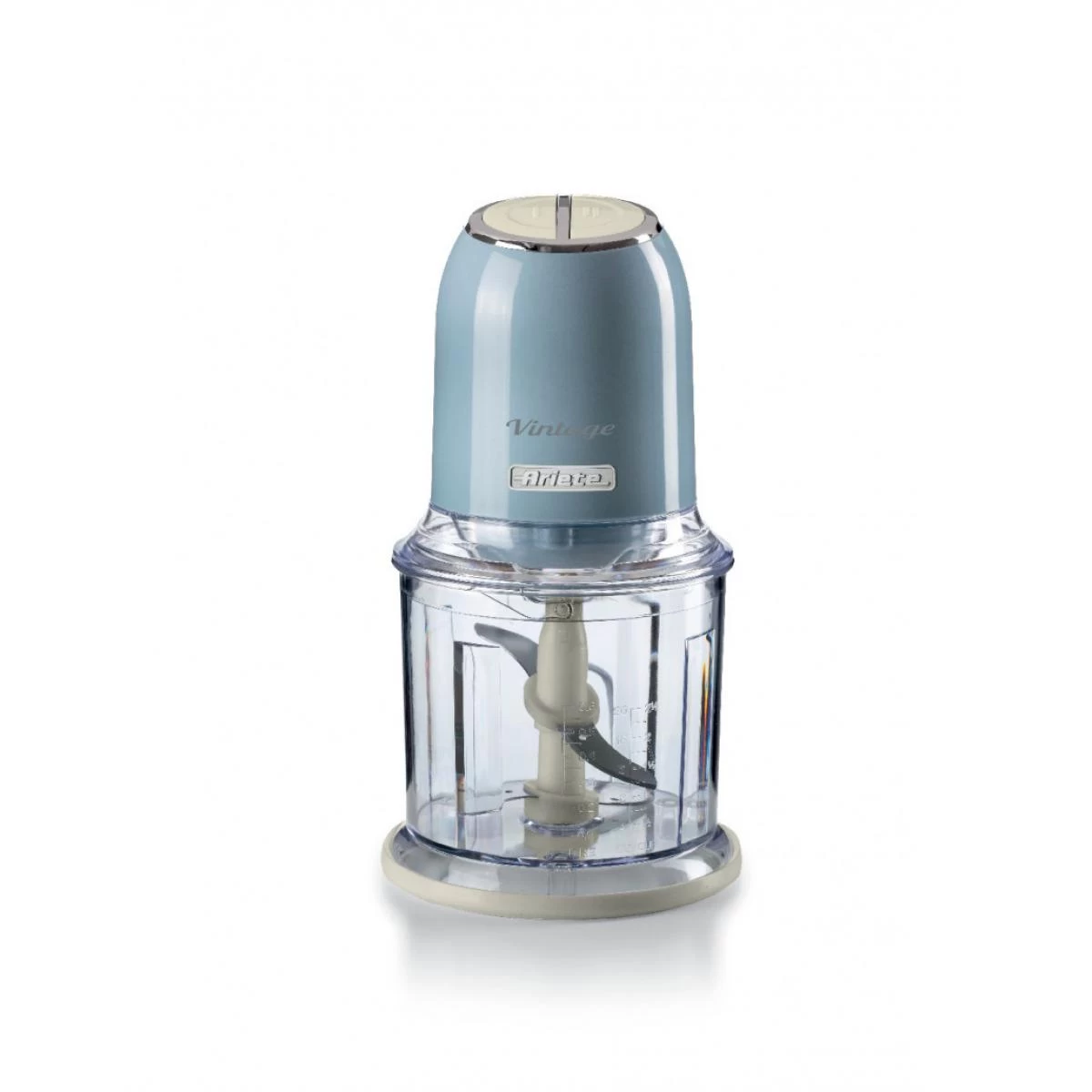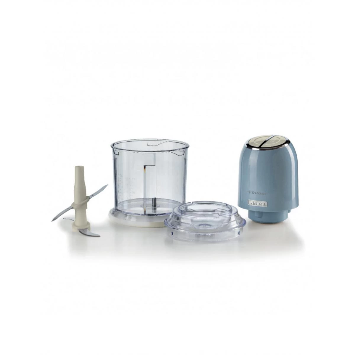Aux lignes rétro et aux douces couleurs pastel, il apporte une touche de style et de fonctionnalité dans votre cuisine. Grâce à sa puissance de 400 watts et à ses 4 lames en acier inoxydable, le hachoir Vintage vous permet de hacher n’importe quel ingrédient pour vos recettes: des légumes à la viande, en passant par le fromage, le pain, les fruits secs et même la glace. Les 2 vitesses, actionnées par les deux boutons situés sur le dessus du hachoir, vous permettent de hacher ou de couper finement les aliments, tandis que les pieds antidérapants assurent une adhérence maximale du produit au plan de travail.