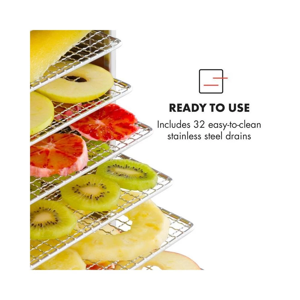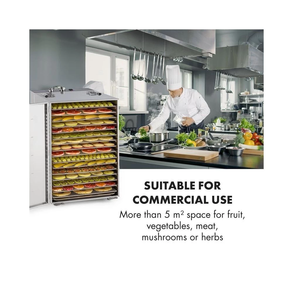 Avec plus de 2,5 m² d’espace pour une grande variété d’aliments et 16 plateaux en inox, le déshydrateur Master Chef 16 de Klarstein convient particulièrement à un usage professionnel : l’espace est suffisant par exemple pour 4 à 20 kg de fruits !