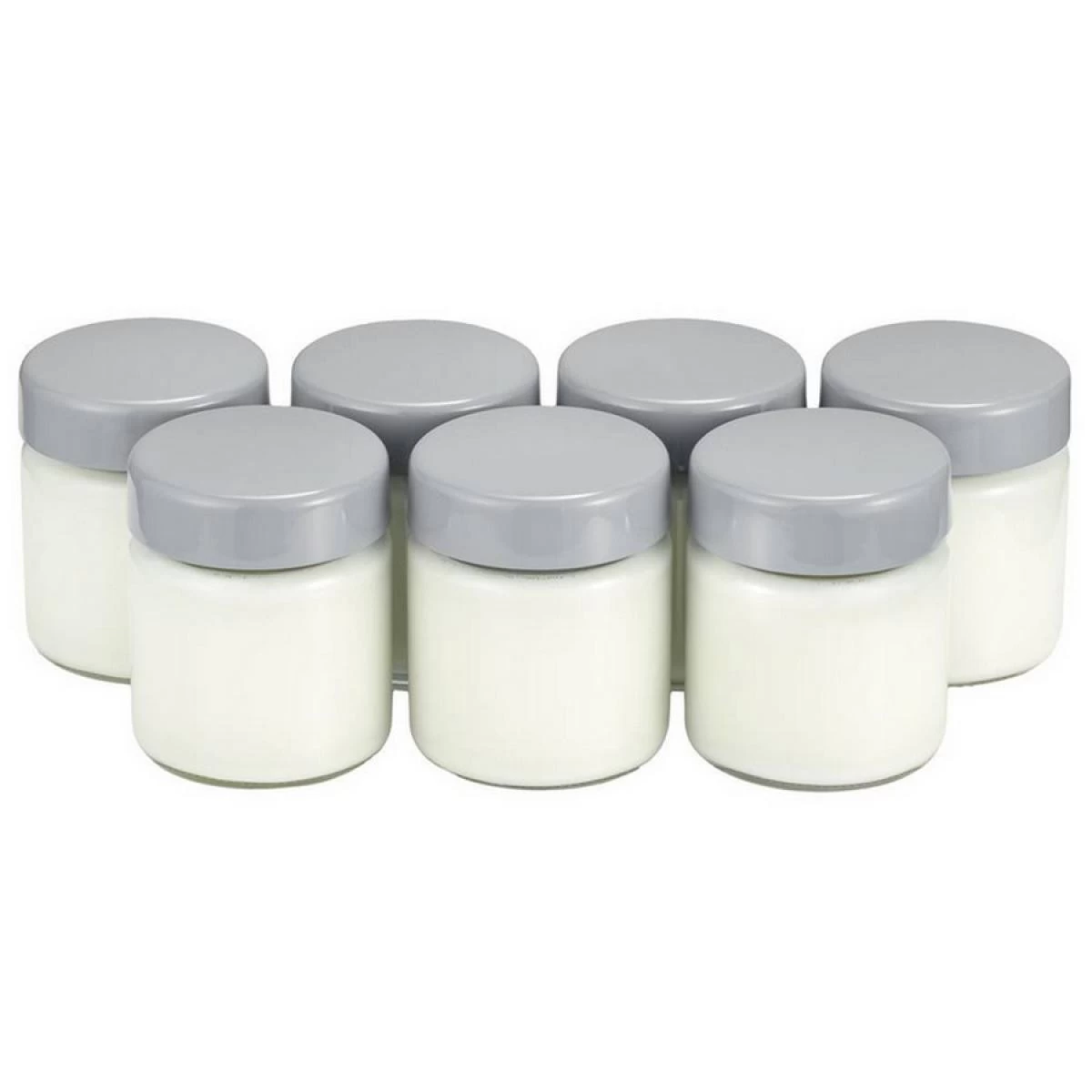 lot de 7 pots pour yaourtière – EG3513 – Lot de 7 pots EG3513 avec couvercle étanche adaptés aux yaourtières SEVERIN. 100 % sans bisphénol A pour une saveur sans danger pour la santé. – Type de produit : Pots pour yaourtière.