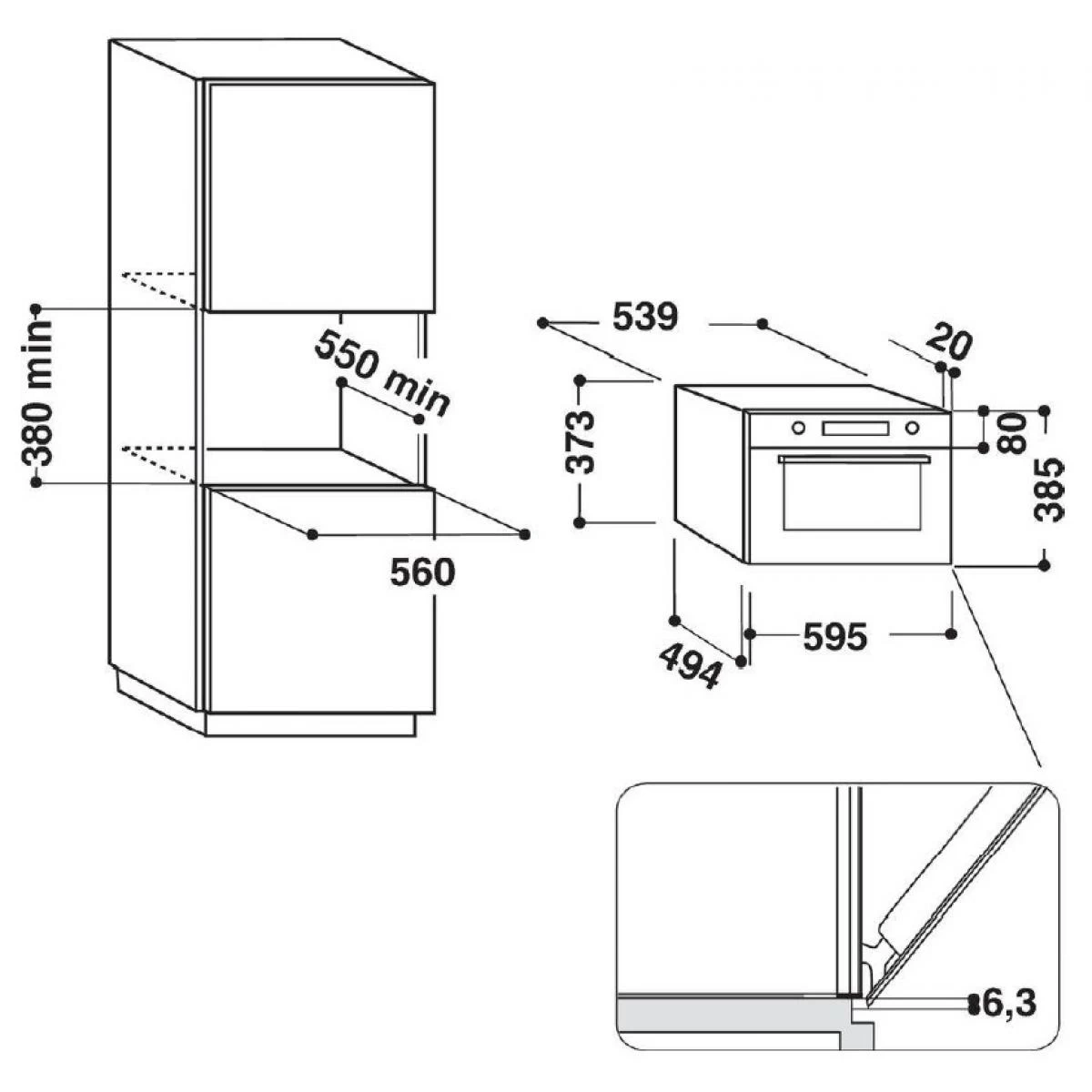 Dim. encastrement (H x L x P en cm) : 38 x 55.6 x 55.
