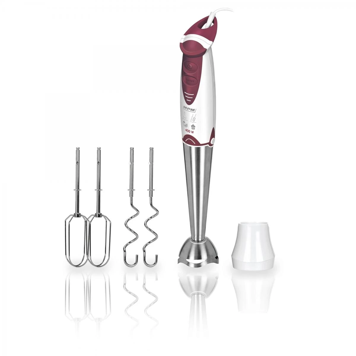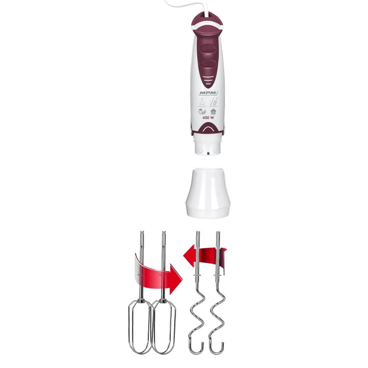 Points forts Mpm Set Mixeur Plongeant avec Fouet en Acier Inoxydable, pour Pétrir, Battre, Turbo 400W Blanc MPM MBL-16
