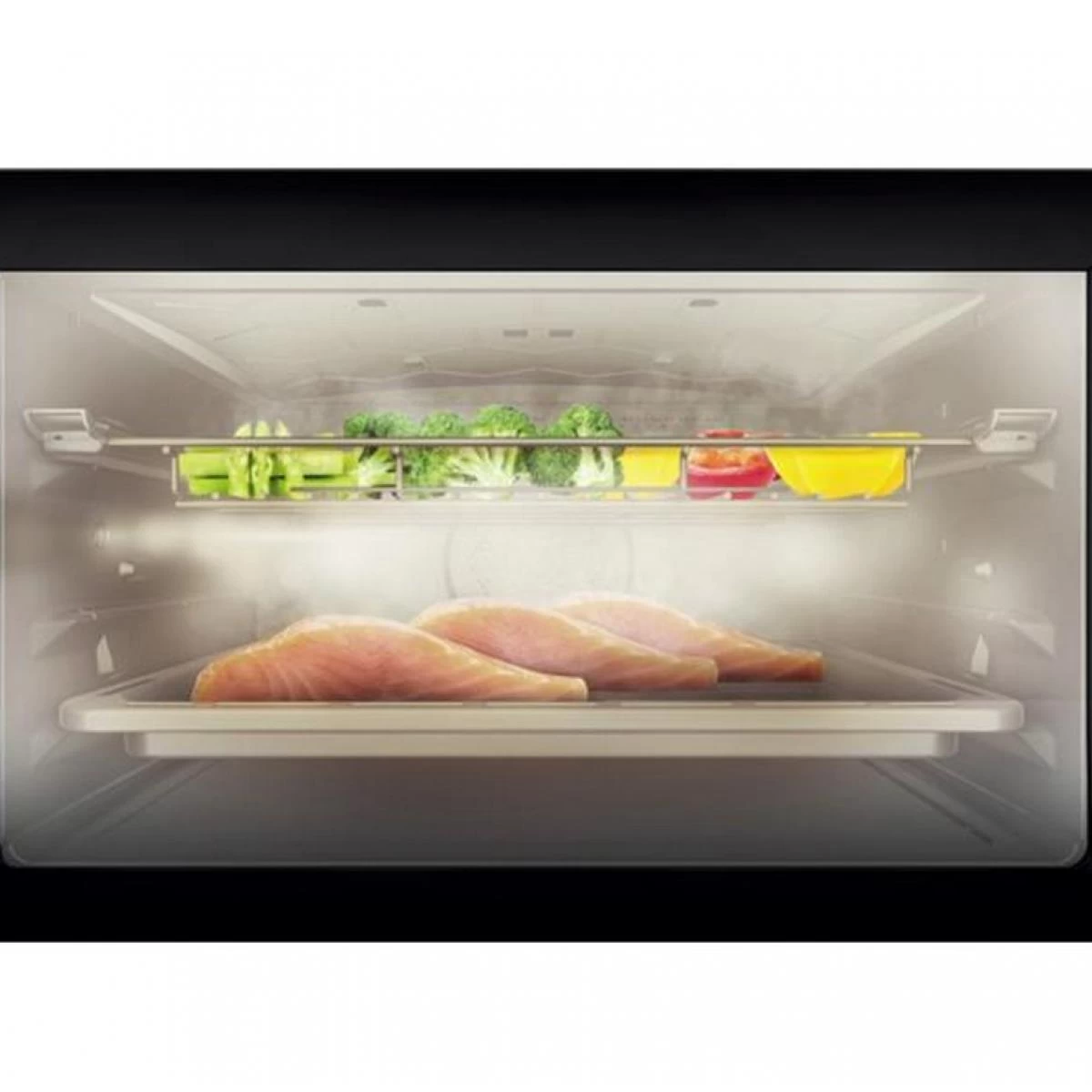 micro-ondes combiné + gril + chaleur tournante 31l – nncs88lbepg – Le NNCS88LBEPG de Panasonic est un Micro-ondes gril + Chaleur tournante (30/60°C et 70/230°C) + Vapeur. Il est doté de 36 programmes de cuisson dont Genius (pour plat réfrigéré et congelé) et Cuisson vapeur pour vous permettre de préparer des plats délicieux et équilibrés sans efforts. Générateur de vapeur 1300 W avec réservoir 800 ml (Cuisson sur deux niveaux possible). Nouveau gril plat à 3 niveaux pour permettre une cuisson 100% uniforme. Fonctions Décongélation Turbo, Minuteur, Nettoyage du réservoir d’eau et Ajout de temps. Technologie Inverter garantissant une cuisson constante et uniforme des aliments. Plateau fixe. Livré avec une grille, un plateau émaillé et une plaque en verre. – Type de produit : Micro-ondes combiné.