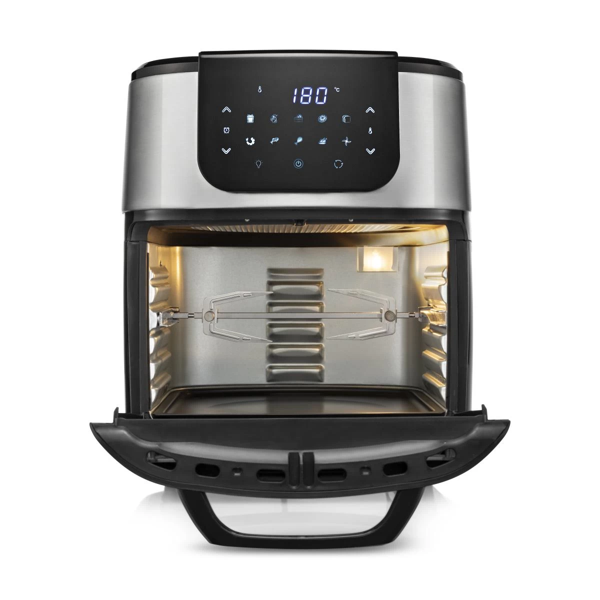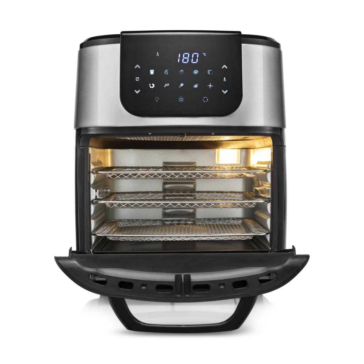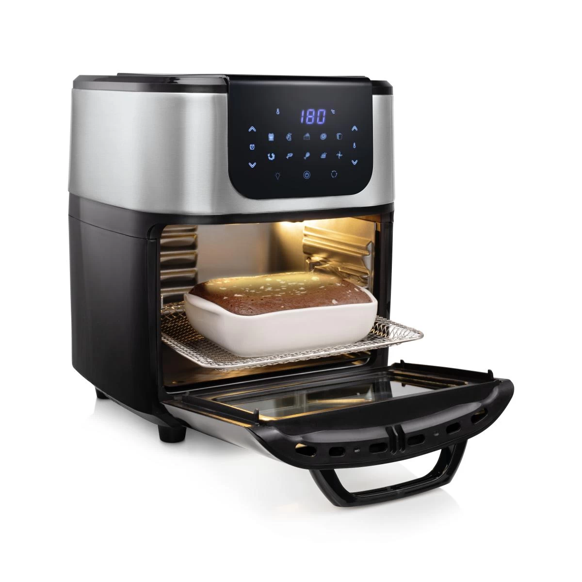Princess Mini four numérique multifonction DeLuxe – Airfryer – Livre de recettes numérique à télécharger – 11 L – 1 800 W. Type de produit: Friteuse d’air chaud, Capacité: 11 L, Capacité de la friteuse: 0,75 kg. Type de construction: Unique, Couleur du produit: Noir, Type de commande: Tactile. Type d’écran: LCD. Puissance: 1800 W, Tension d’entrée AC: 220 – 240 V, Fréquence d’entrée AC: 50/60 Hz. Largeur: 397 mm, Profondeur: 310 mm, Hauteur: 378 mm