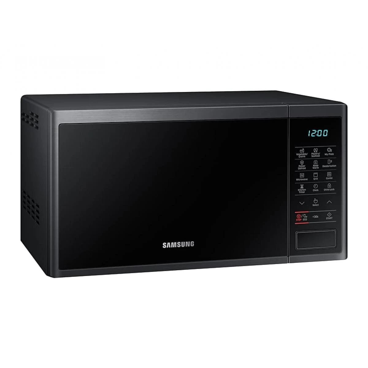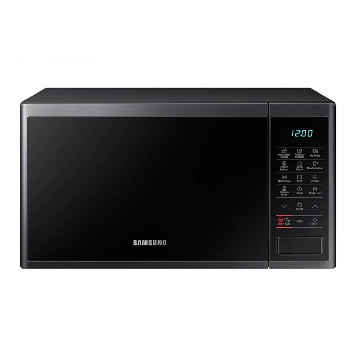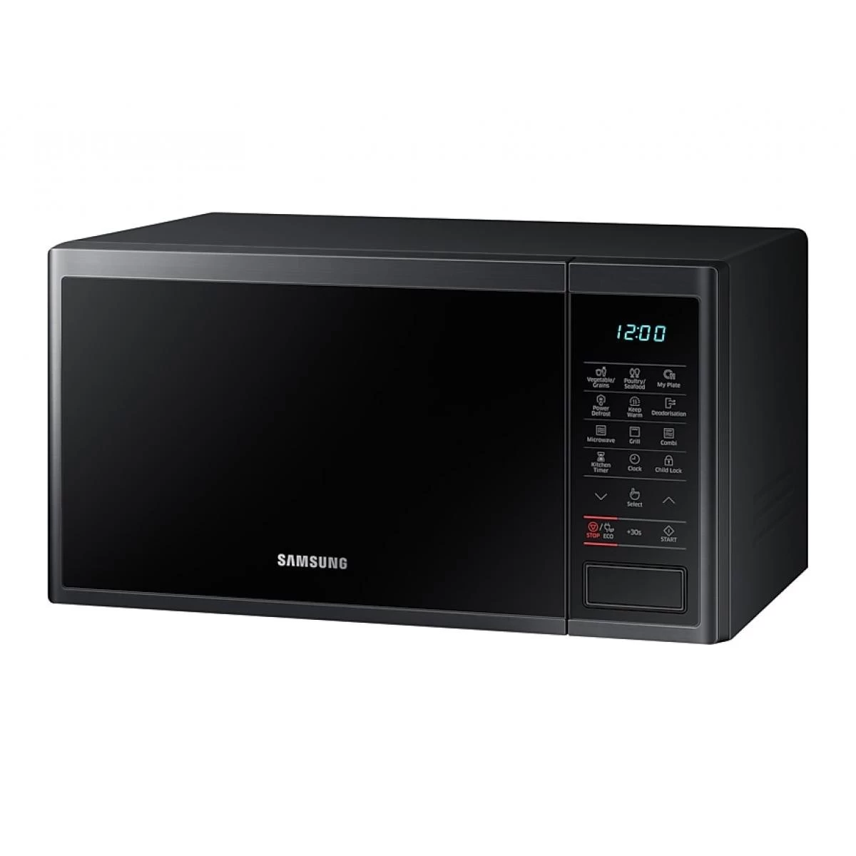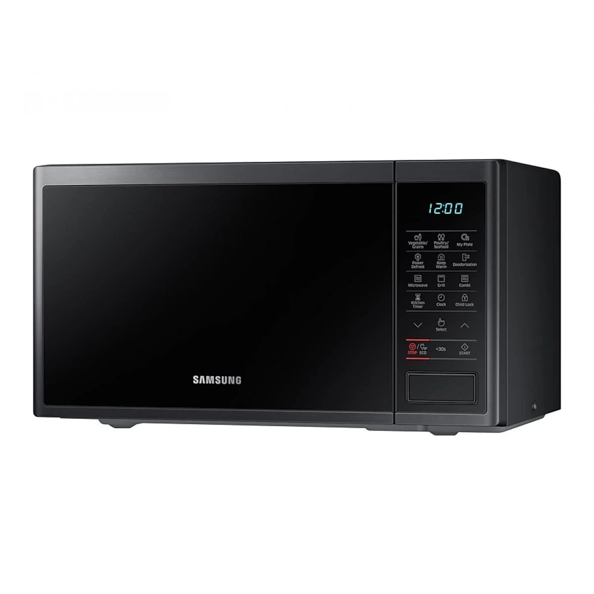 Samsung MG23J5133AG/EC. Placement de l’appareil: Comptoir, Type de produit: Micro-ondes grill, Capacité intérieure: 23 L. Charge connectée: 2300 W, Tension d’entrée AC: 230 V, Fréquence d’entrée AC: 50 Hz. Largeur: 499 mm, Profondeur: 354 mm, Hauteur: 275 mm