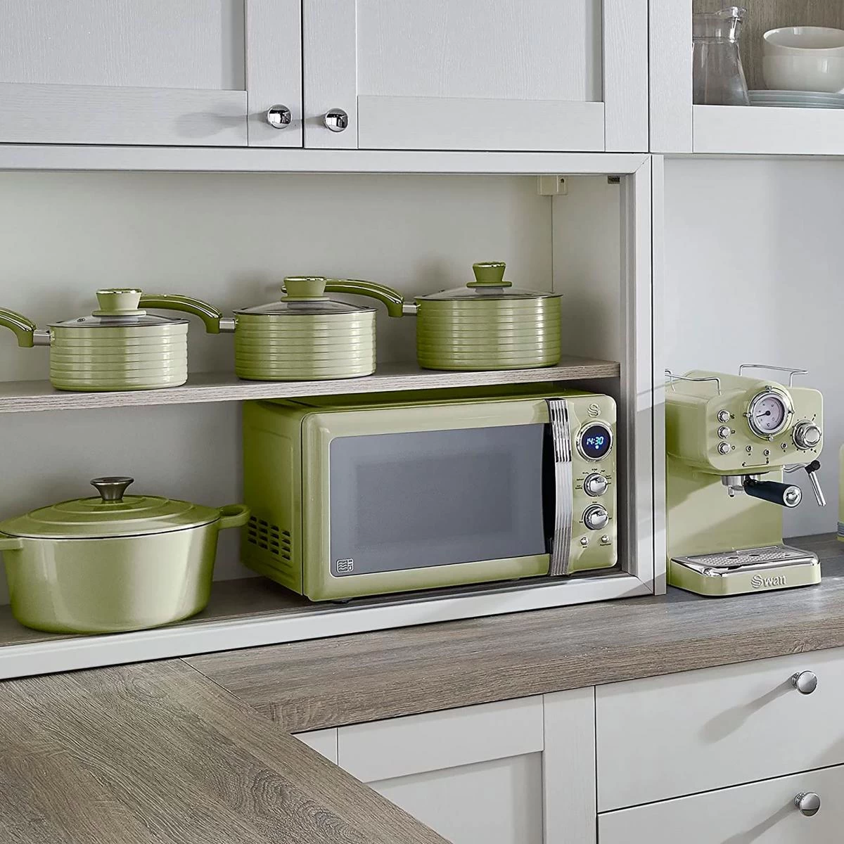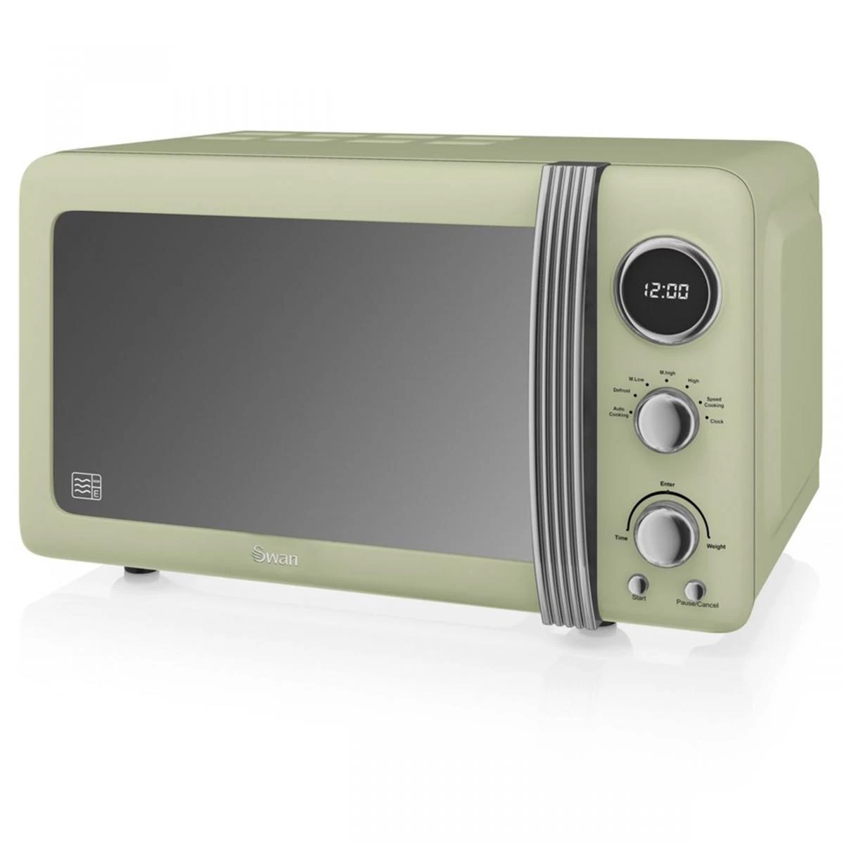 Points forts Swan Retro Micro-ondes Numérique 20L, 5 Niveaux Puissance, Décongélation, Minuterie 800W Vert SWAN SM22030GN