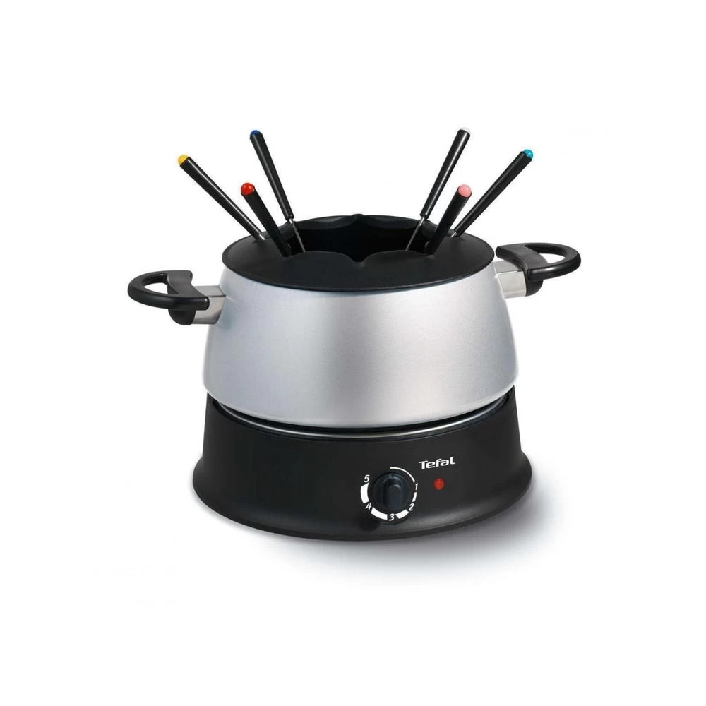service à fondue 1200w 6 fourchettes silver/noir – ef300010 – Service à fondue Tefal EF300010 pour 6 personnes. Réunissez-vous autour de cette fondue alliant convivialité et praticité ! Réalisez et partagez de délicieuses fondues bourguignonnes ou savoyardes !Cette fondue saura se rendre indispensable pour vous assurer des soirées conviviales pour 6 personnes !Thermostat réglable 5 positions pour préparer tous les types de fondues : huile, fromage, chocolat, etc …Caquelon amovible avec revêtement antiadhésif intérieur et extérieurMise en place et déplacement faciles du caquelon grâce aux 2 anses en thermodurChauffe rapide grâce à sa puissanceLivrée avec 6 fourchettes en acier nickelé avec manche isolant et témoin de couleurEntièrement démontableNettoyage facile : caquelon, repose-fourchette et fourchettes passent au lave-vaisselle. – Type : Service à fondue.