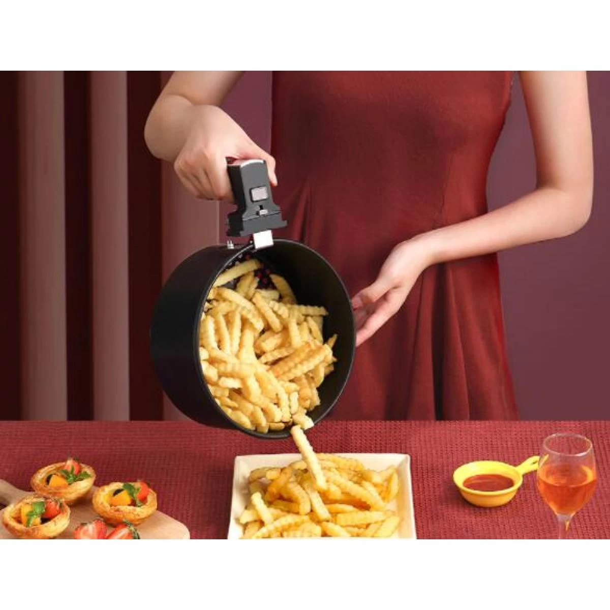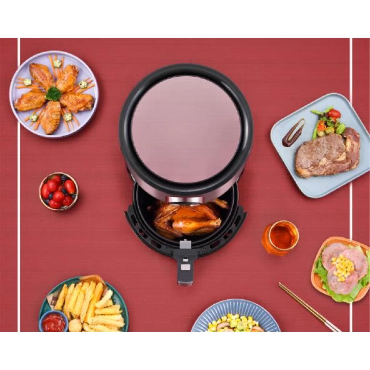 Points forts Universal Poêle à friteuse à air domestique poêle électrique multifonction machine à frites(Or rose)
