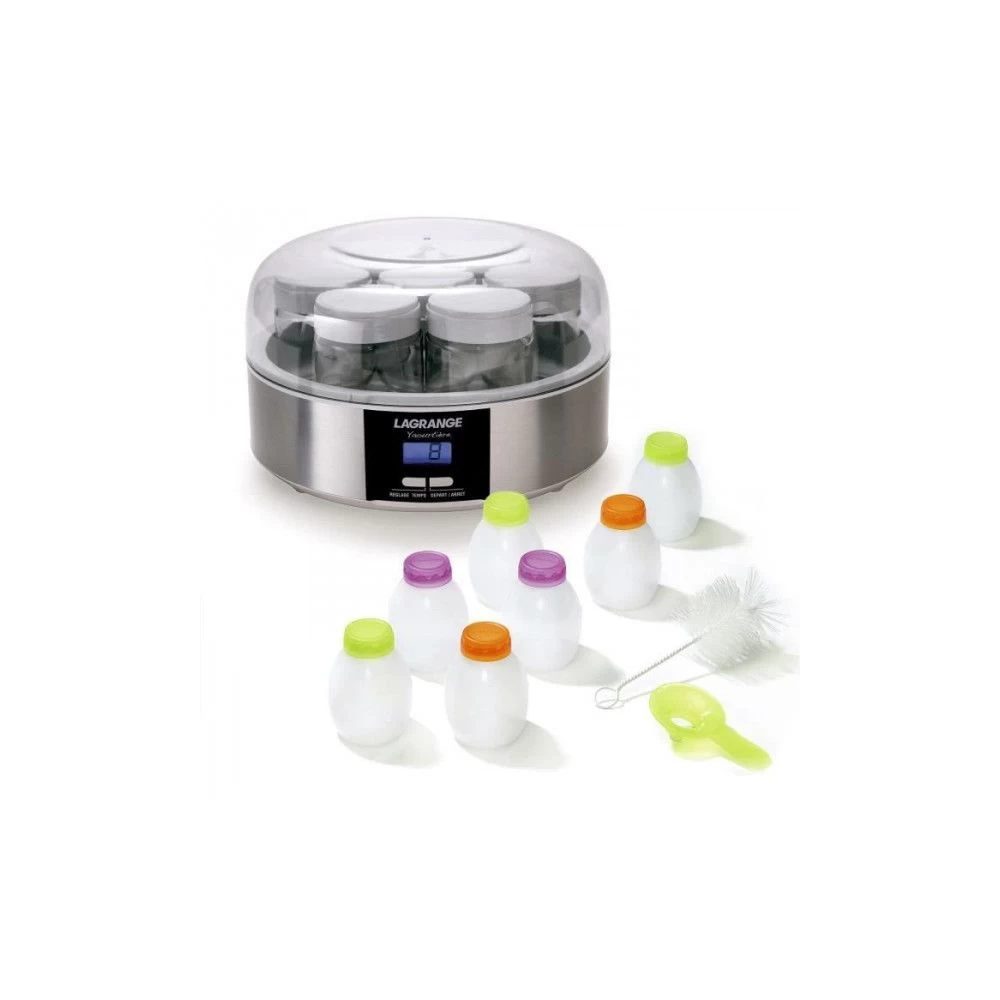 yaourtière 7 pots 13w + kit 7 yaourts à boire – 439103 – Yaourtière Lagrange 439103 pour créer de délicieux yaourts et yaourts à boire! Elle est simple à utiliser, programmable et adaptée au plus gourmands.Simple d’utilisationPourvue d’un écran facile à utiliser, la yaourtière s’arrête automatiquement etsonne à la fin du programme.Précise, la yaourtière est programmable jusqu’à 15HElle permet de réaliser une multitude de recettes au lait entier, lait demi écrémé et lait écrémé, grâce à une adaptation parfaite du temps de préparation.Adaptée au plus gourmandsLa yaourtière est livrée avec 7 pots en verre de grande capacité (185 g) permettant d’ajouter des fruits ou de la confiture à la préparation. Un kit de 7 bouteilles pour réaliser des yaourts à boire est également fourni.Rangement facilitéParce qu’il est nécessaire de retirer les couvercles des pots de yaourt à boire lors de leur préparation dans la yaourtière, LAGRANGE a conçu et breveté des couvercles astucieux qui s’emboîtent les uns dans les autres près de l’appareil, pour un rangement simple et rapide.Pratiques, les pots de yaourts personnalisables! Les couvercles des pots de yaourts comportent une zone de marquage permettant d’indiquer, à l’aide du feutre effaçable fourni : la date de confection du yaourt, son parfum? – Type de produit : Yaourtière.